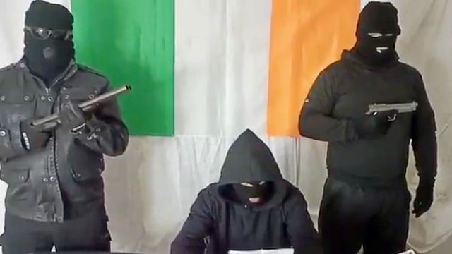 A video surfaced on social media on November 28 showing three masked men, one holding what appeared to be a handgun, declaring local elected representatives in the Newry, Mourne and Down district as "legitimate targets."