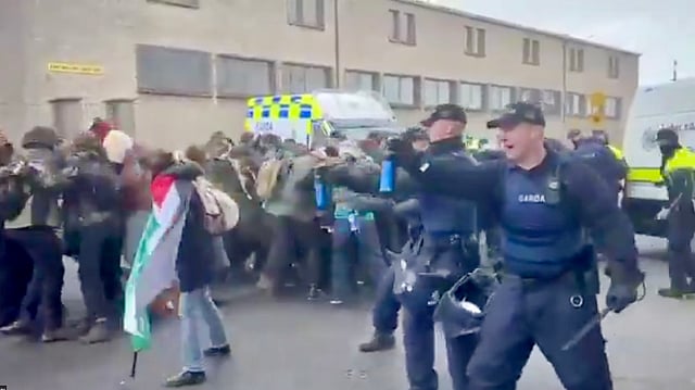 A video has surfaced on X of pro-Palestine demonstrators clashing with Irish police, who deployed batons and pepper spray to break up the group.